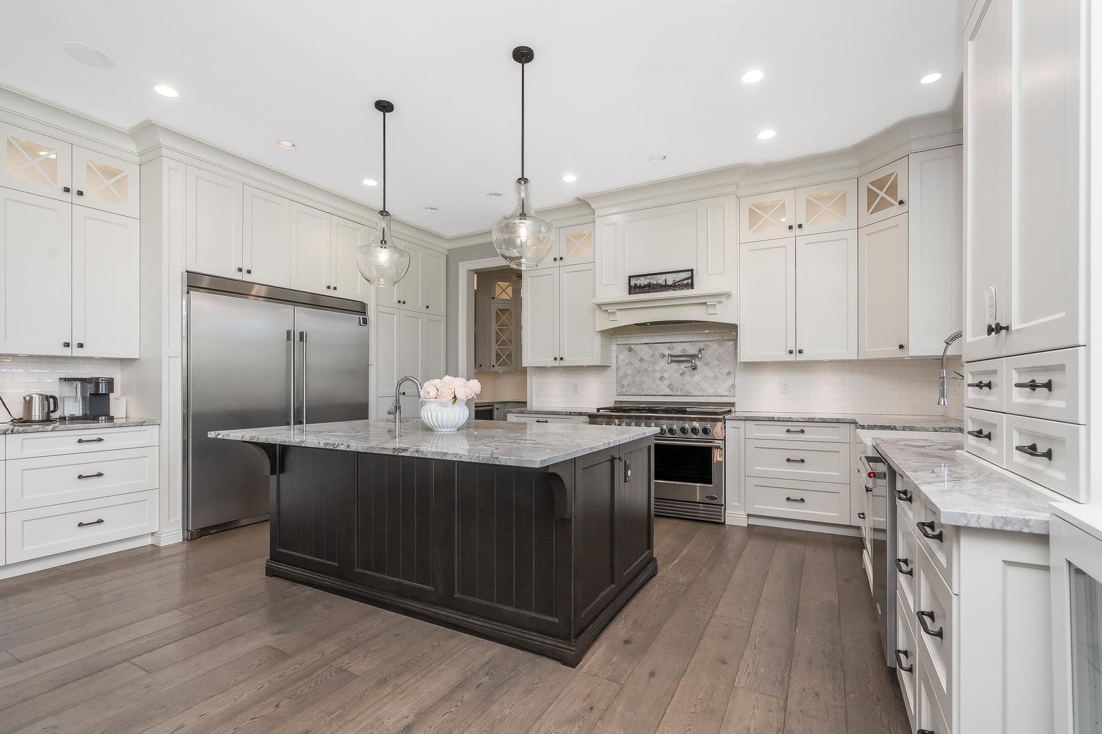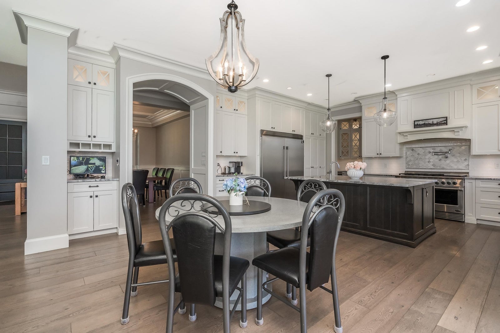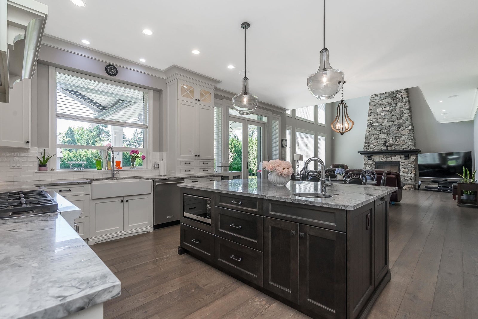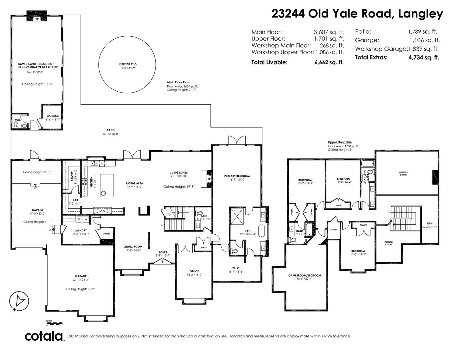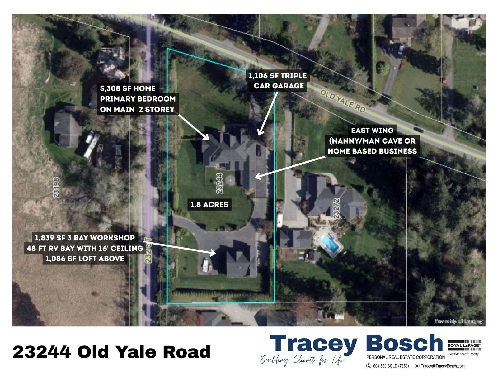 INCREDIBLE PRIVATE PARKLIKE 1.8 ACRE ESTATE! Stunning 5308 sf Master on main 2-storey w/amazing partly covered south exposed heated outdoor living & firepit area. Parking for All Your Toys + 1100 sf Triple Garage & sep 2100 sf 3 BAY WORKSHOP w/bathrm, 48’ RV bay w/16’ ceiling + 1085 sf finished office/guest area above. 200 amps to house & 200 amps to shop. Custom home features high end finishing, spacious open plan, Huge Gourmet kitchen w/breakfast bar island & walk-in pantry, living rm w/high ceilings & large dining area. Luxurious primary suite w/vaulted ceiling, walk-in closet & Spa-Like ensuite. Upstairs - 3 large bedrms, 2 bathrms, games/5th bedrm & den. Bonus semi-detached rec/games rm w/bathrm & fireplace – perfect for entertaining or easy suite. Minutes to everything. A must see!