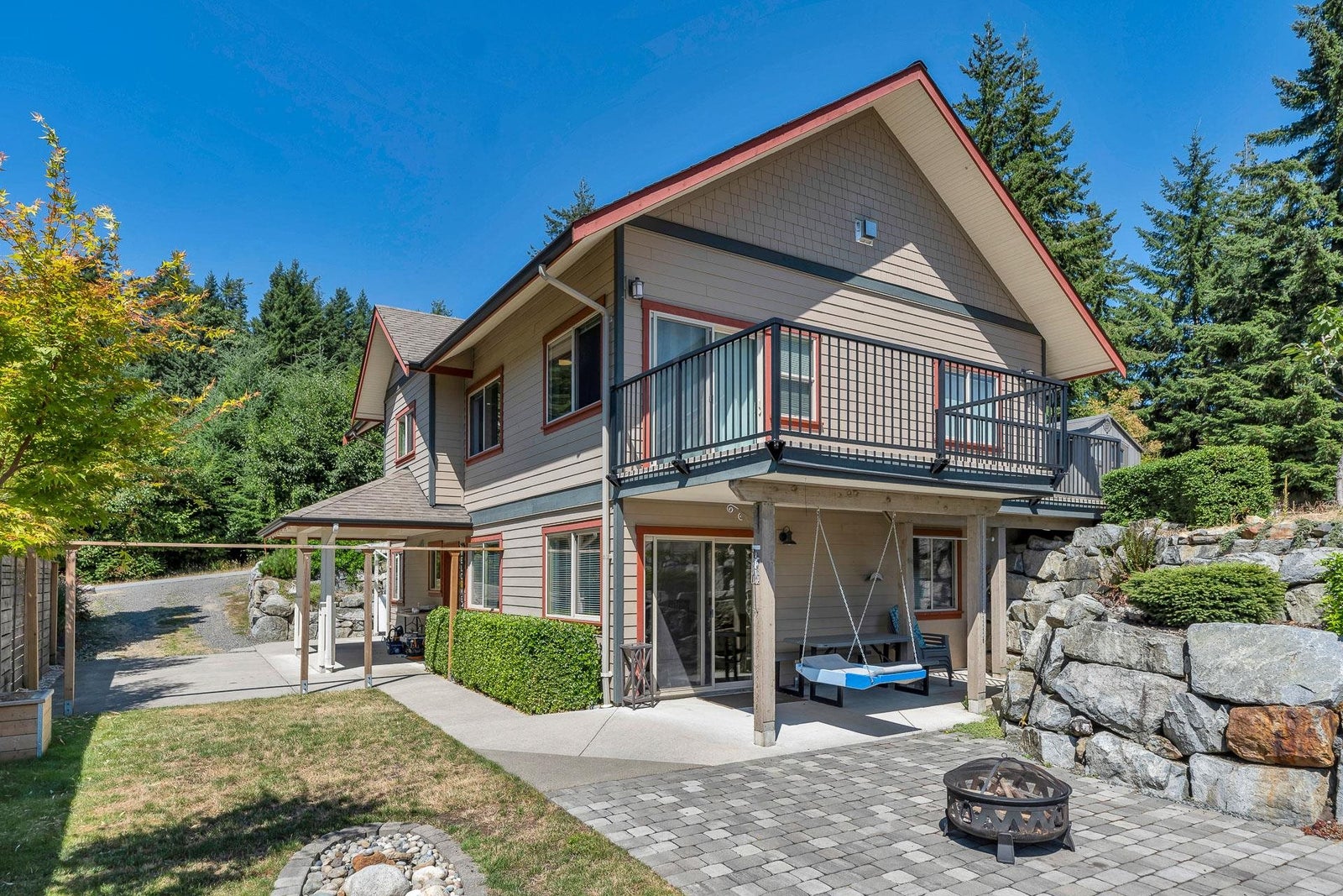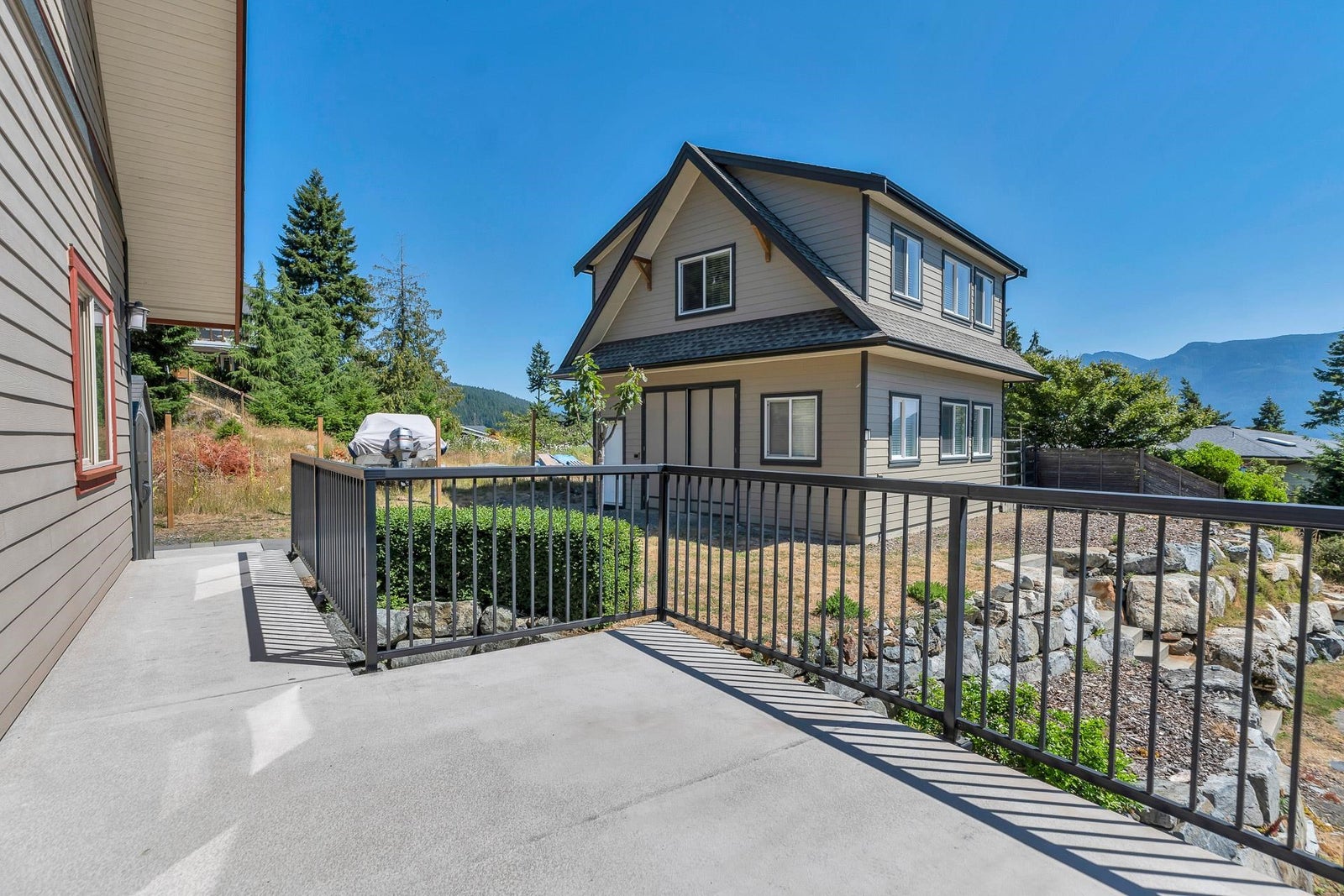 Lovely mountain & ocean views from all levels, patios, yard & fire pit area! Custom 3 bedrm open plan rancher w/legal bright & spacious 2 bedrm suite in the walkout basement w/its own yard(separate addresses, laundry, hotwater tanks & meters). Loads of parking. Easy whole house living w/addition of interior staircase. Detached 24x24 heated & insulated workshop w/10’ ceiling, 9x9 door, 60 amps, rough in for plumbing & solar & sep entrance to fully finished floor above, perfect for man cave/guests/office. Beautifully landscaped 11,805 sf lot on city sewer & water. Fantastic location across from Cates Hill Neighbourhood Park & Tir-na-nOg Theatre School. Short stroll to nature trails, beaches, Snug Cove, the ferry, Crippen Park & local schools. Great family neighborhood. Great outdoor spaces.
