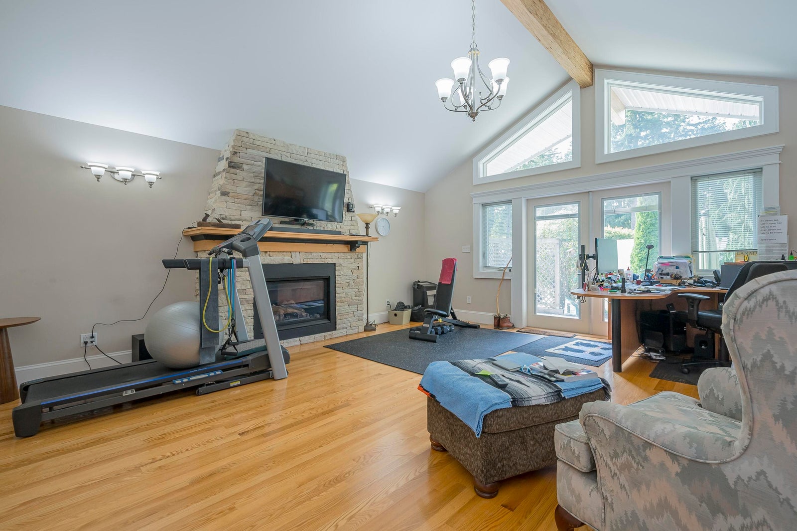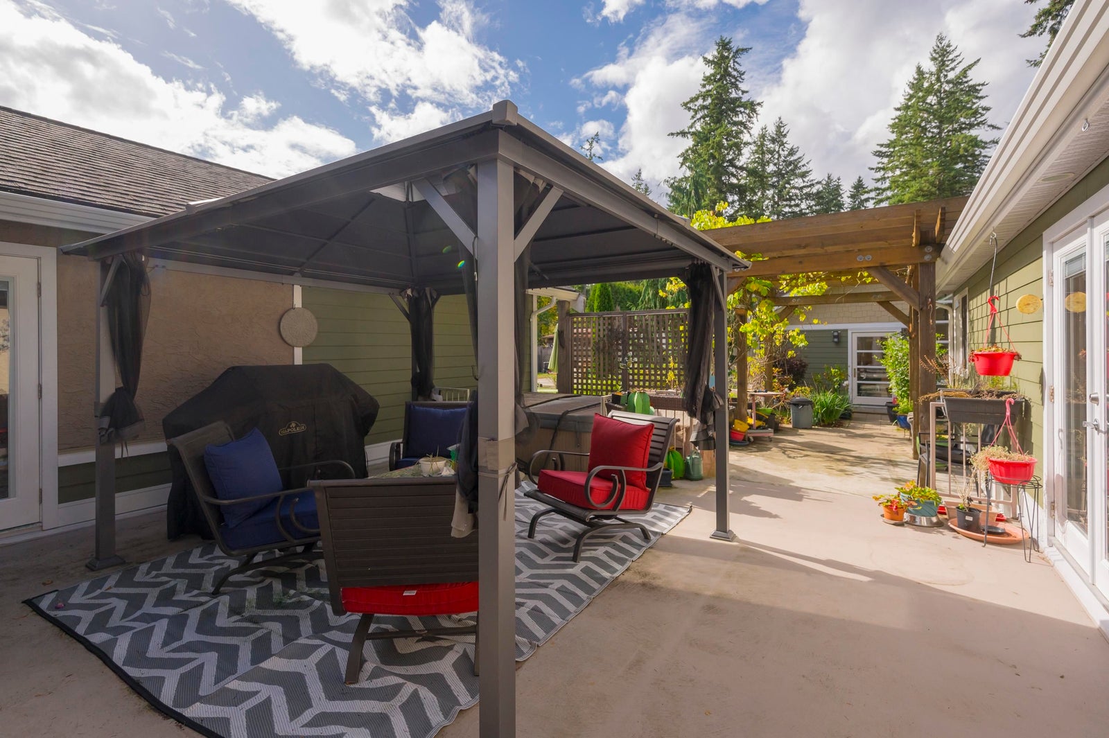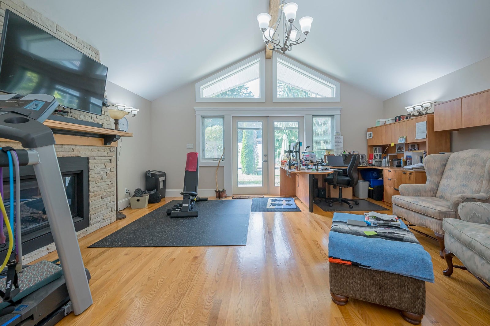 Beautifully updated 2289 sf BRIGHT & SPACIOUS U shaped rancher (wheelchair accessible) w/attached double garage + new INCREDIBLE 1250 sf triple bay workshop w/mezzanine, high ceilings & rm for a hoist. Private parklike 14,810 sf corner lot w/sep driveway to shop & loads of parking for all your toys & RV’s. Beautifully landscaped West exposed rear yard w/private outdoor living area & Gazebo w/direct access from all main rms. Custom kitch w/soft-close cabinets, SS appliances & gas range. Living rm w/fireplace. Huge fam rm w/vaulted ceiling & fireplace. Outstanding 440 sf primary suite w/fireplace, California Closet walk-in & spa inspired cheater ensuite w/dual vanities, soaker tub, oversized shower, heated floor & towel bar. Central AC, Hardy Board siding. One-of-a-kind property, a must-see!