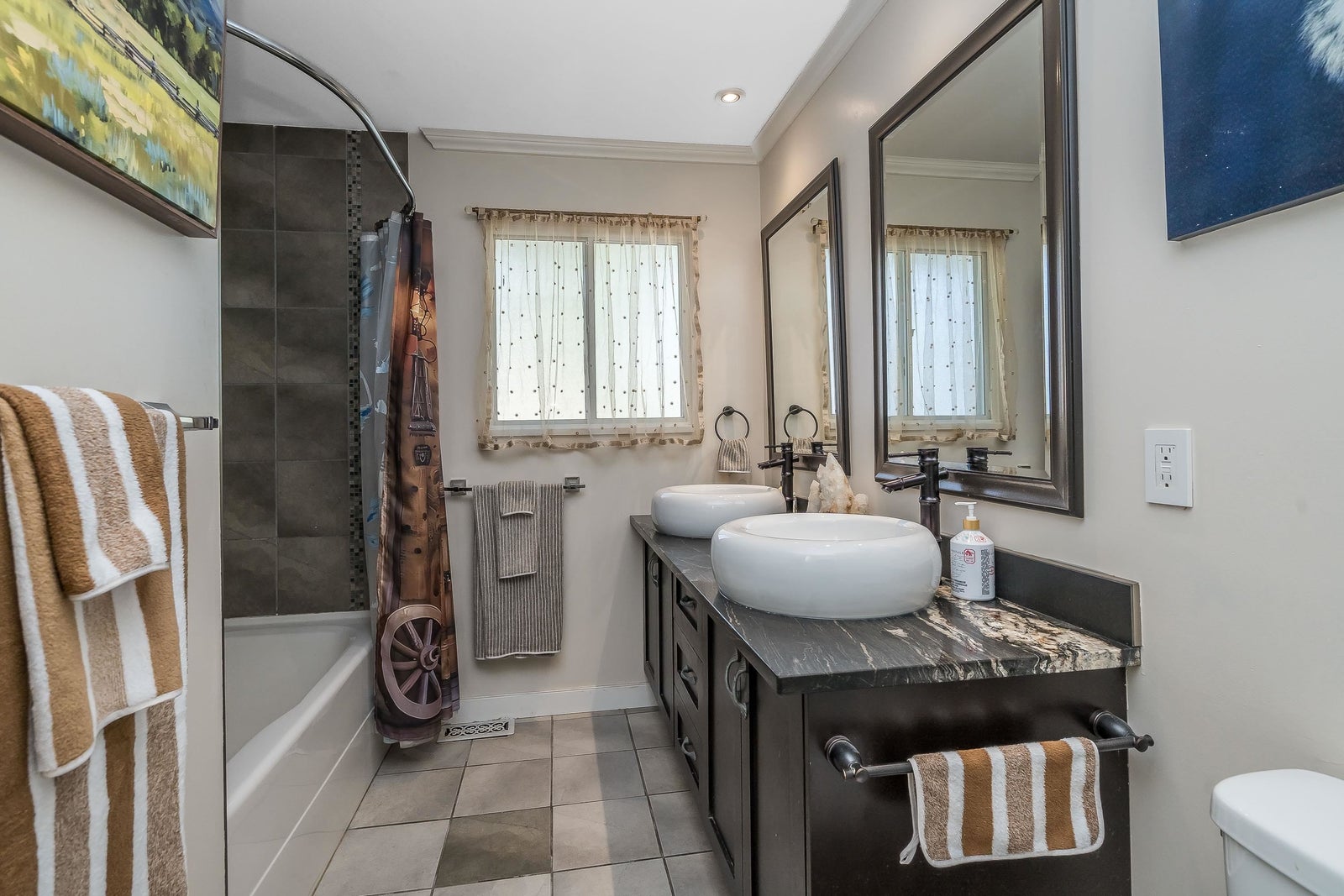 RARE FIND! Car lovers dream! Nicely updated open concept 2363 sf level entry basement home with 3 bedrooms on the main, huge deck for outdoor living & a Fantastic Bright & Spacious 2 bedroom suite with its own laundry. For hobbyists or car lovers, this property delivers! Enjoy an Incredible detached 27x24 workshop w/200 amps & 10’3 ceiling, an attached 35’6x16 drive thru tandem garage & a handy 21’5x12 workshop & a 13x12 wired & insulated shed. All this on a gorgeous private parklike beautifully landscaped 12,012 sf property (on city sewer) w/huge rear yard, gardens, greenhouse & side yard access -room for all your toys & RV. New roof in 2014, high efficiency furnace & central air conditioning/heat pump. Fantastic location with no one across the street & minutes to everything. A must see!