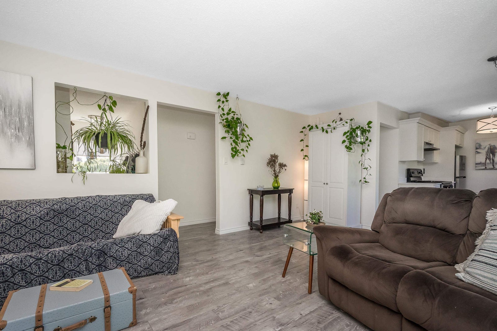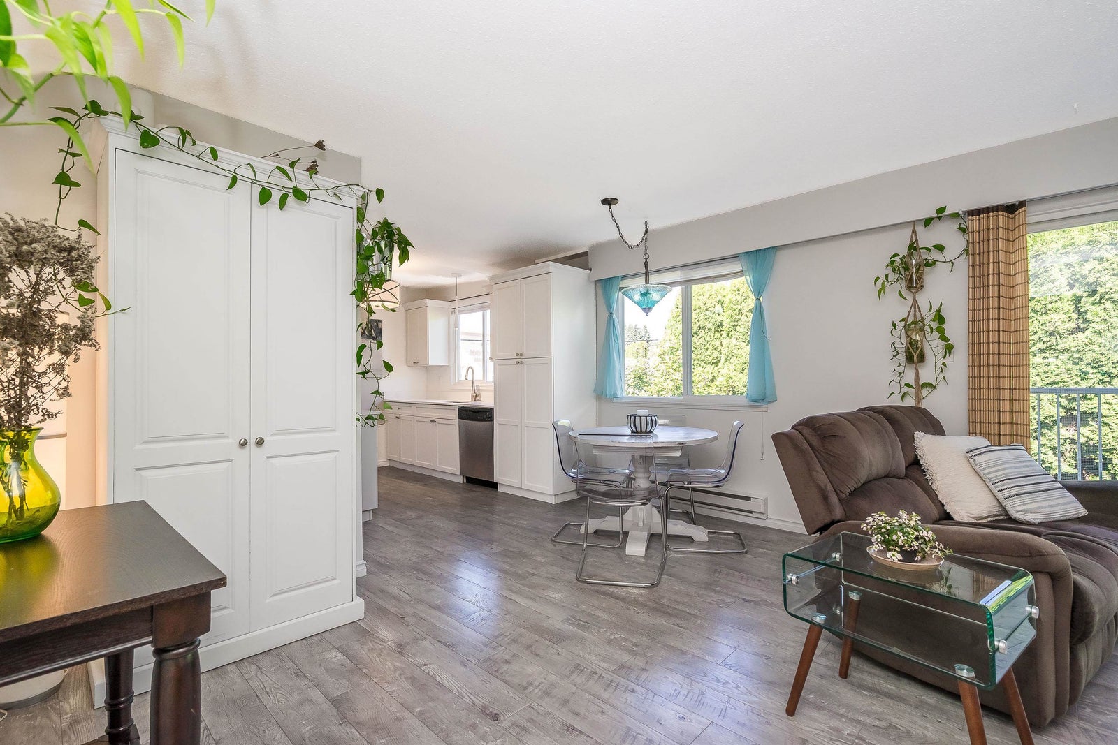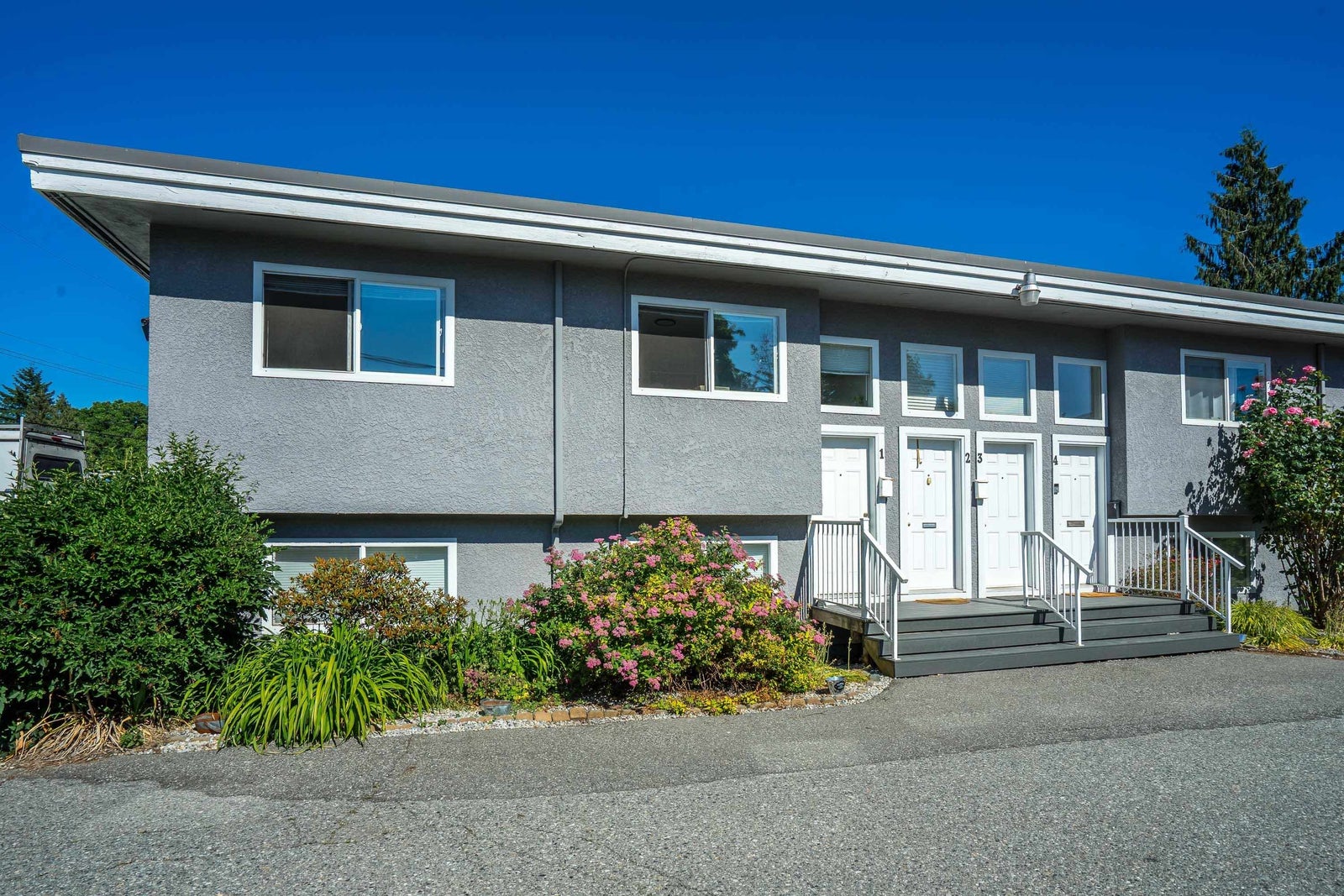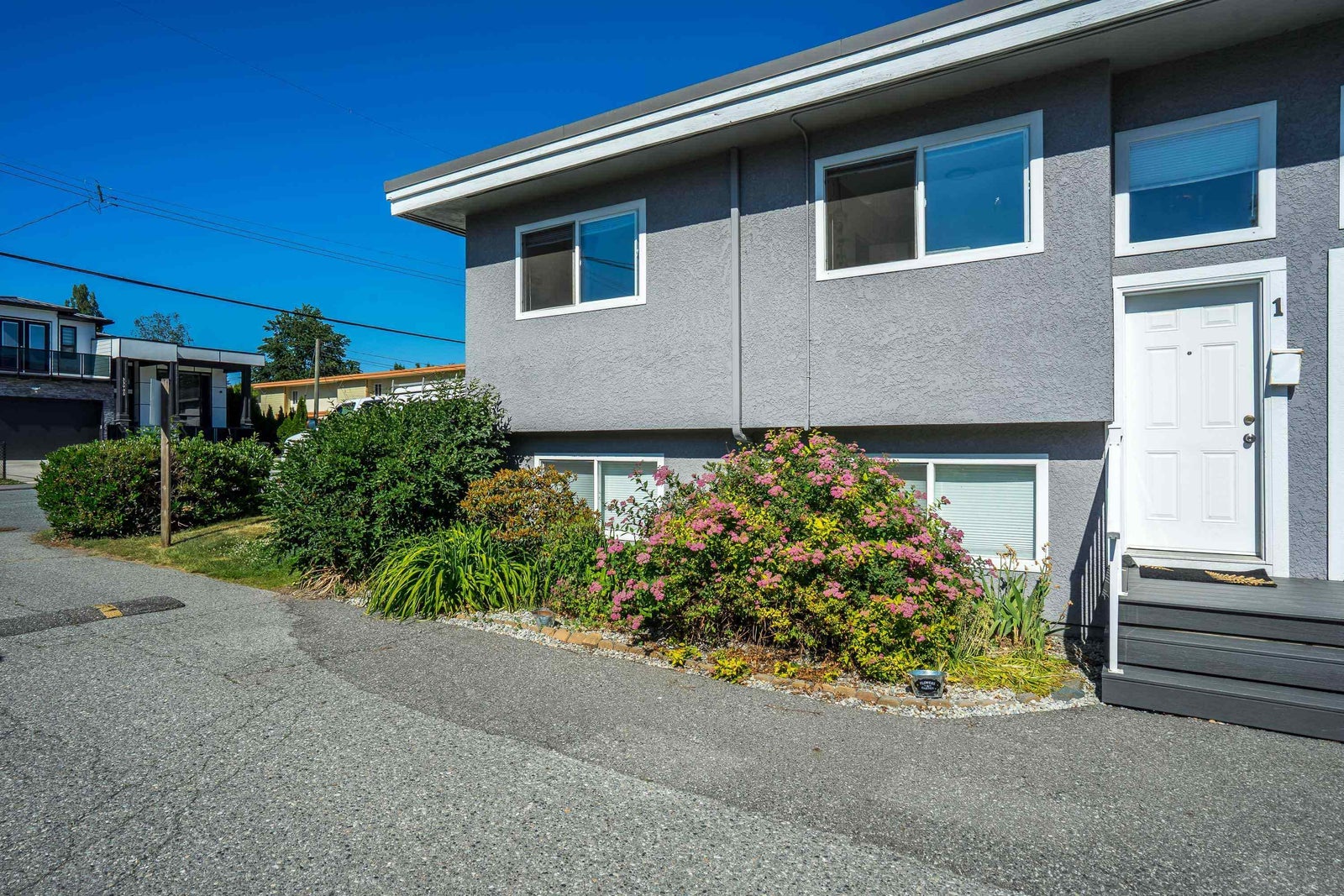 Stunning, Private, Beautifully Updated Open plan upper end unit townhome with 2 large bedrooms & bright & spacious one-level living in a quiet well located community. Updated white cabinets, quartz countertops, SS appliances, updated bathroom, flooring, fresh paint, double windows & contemporary finishes. Large east & west facing windows flood the space with light while sliding doors off the living room lead to a large covered deck with a private outlook - perfect for entertaining. Enjoy the convenience of 2 parking stalls right outside your door & a prime location minutes to everything, the University of the Fraser Valley & easy access to Highways 1 & 11. Two pets w/no size restriction & rentals allowed. Fantastic, move-in ready home - perfect for first-time buyers, downsizers or investor