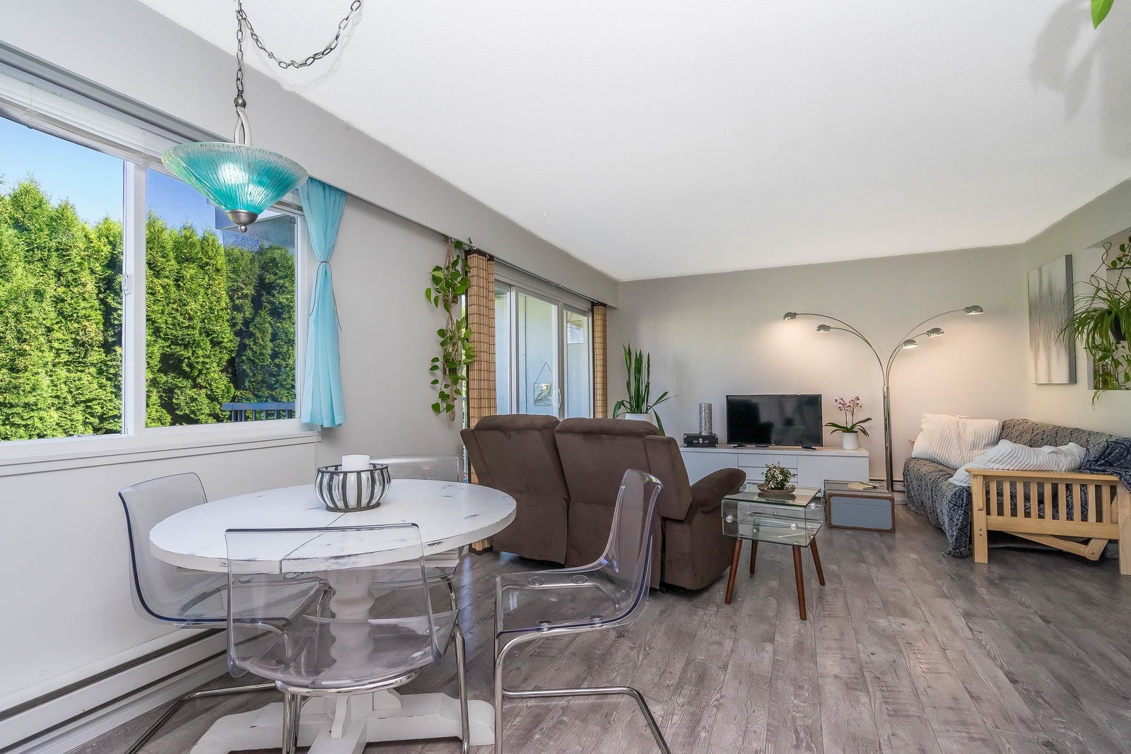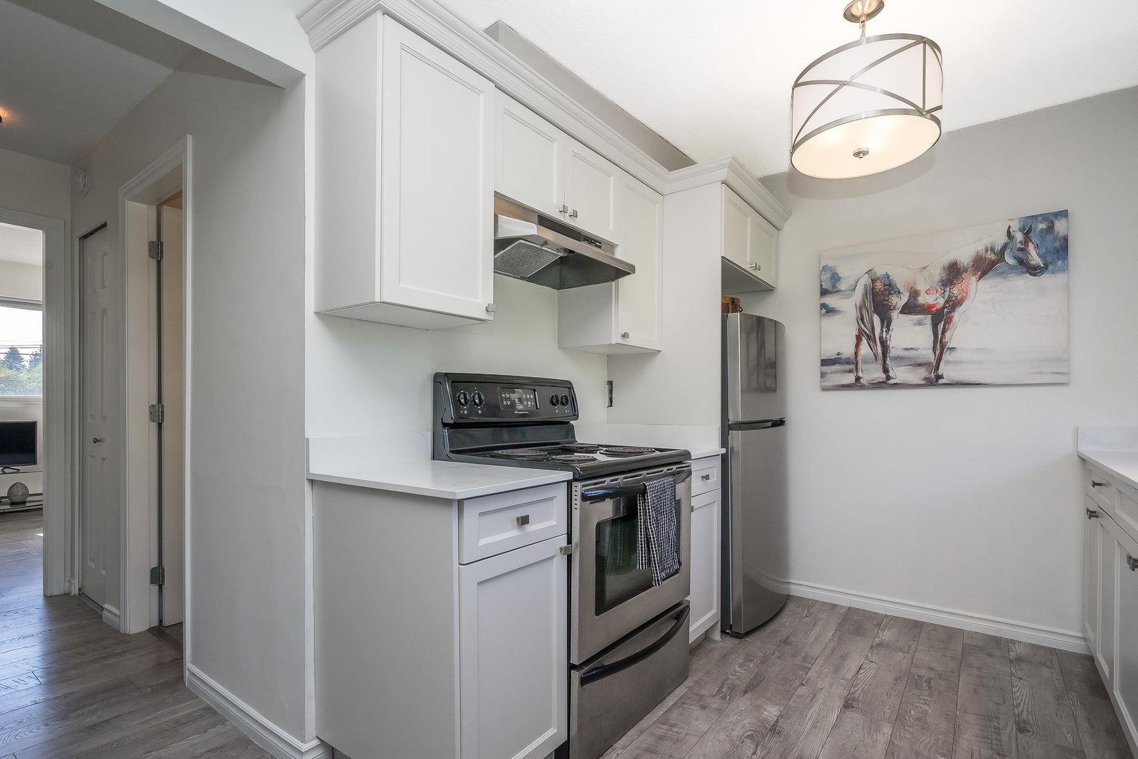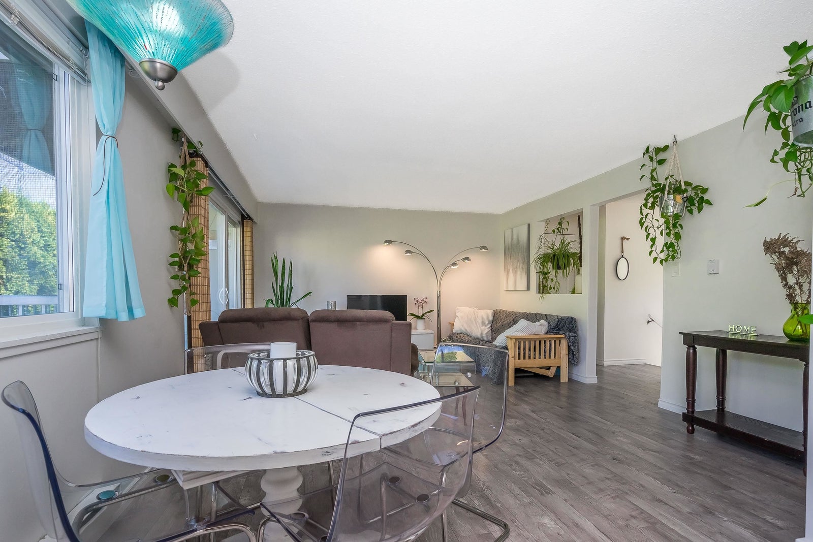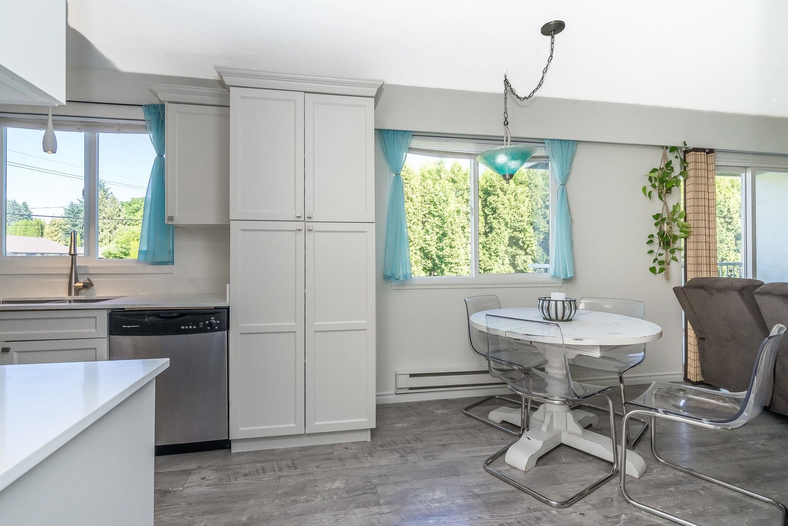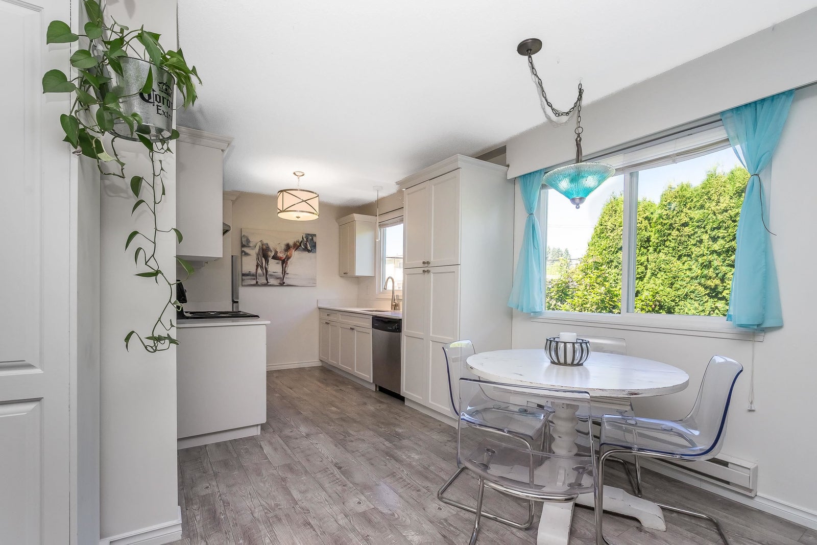 Stunning, Private, Beautifully Updated Open plan upper end unit townhome with 2 large bedrooms & bright & spacious one-level living in a quiet well located community. Updated white cabinets, quartz countertops, SS appliances, updated bathroom, flooring, fresh paint, double windows & contemporary finishes. Large east & west facing windows flood the space with light while sliding doors off the living room lead to a large covered deck with a private outlook - perfect for entertaining. Enjoy the convenience of 2 parking stalls right outside your door & a prime location minutes to everything, the University of the Fraser Valley & easy access to Highways 1 & 11. Two pets w/no size restriction & rentals allowed. Fantastic, move-in ready home - perfect for first-time buyers, downsizers or investor