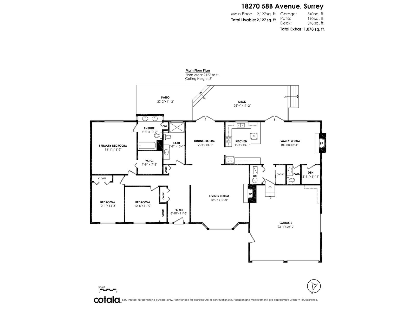 FANTASTIC VALUE - PRICED TO SELL! PRICED $273,500 UNDER ASSESSMENT! RARE FIND! Spacious well-kept 2127 sqft 3-bedroom plus den, 3 bathroom PLUS DEN rancher with a long driveway & extra deep double garage for ample parking. Vaulted ceilings, large updated wheelchair friendly bathroom with heated floor, Low-E double windows, high efficiency furnace, heat pump & central air conditioning for year round comfort. Sprawling 10,800 sqft lot - huge private parklike south-facing rear yard. This home has an incredible layout, large open rooms, two feature wall fireplaces, very large bedrooms, extra large ensuite & walk-in closet. Located on a quiet cul de sac in a fantastic neighbourhood. A perfect home to update & make it your own. Don't miss out!