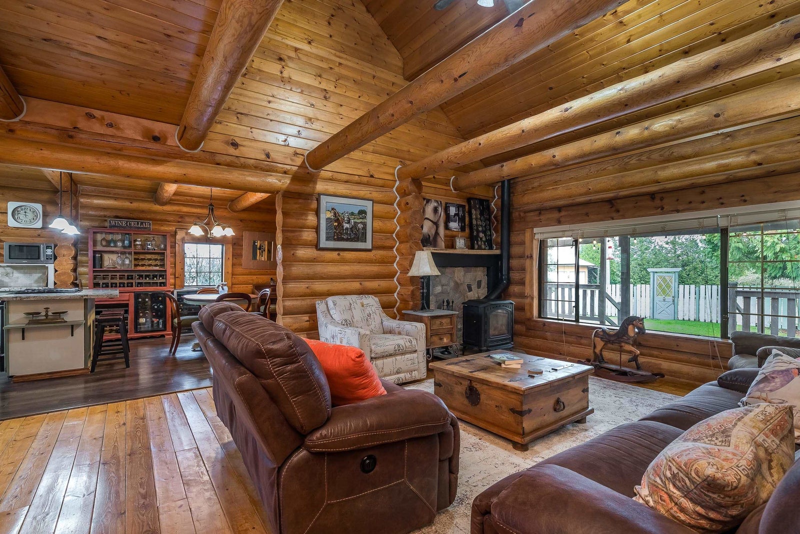 Campbell Valley Country Charmer! Horse & shop lovers paradise. Private Parklike gently rolling 4.63-acres with no creeks, easements or right of ways. Gorgeous open plan log home - Loaded with Character. 8 stall barn with water, run outs, x-fenced pastures. 50x24 triple bay workshop, covered RV parking + a machine shed. Inviting covered porch, foyer w/high vaulted ceilings, warm & welcoming living room with fireplace, large country kitchen & dining rm, sunroom & expansive partly covered deck—perfect for everyday living & entertaining. Main floor - 2 large bedrms & a full bathrm. Upstairs - 2 more bedrms - walk-in closet, incredible ensuite w/clawfoot soaker tub & a cozy fireplace. New metal roof 2025. Short walk to Campbell valley trail. One-of-a-kind property. Country living at its finest!
