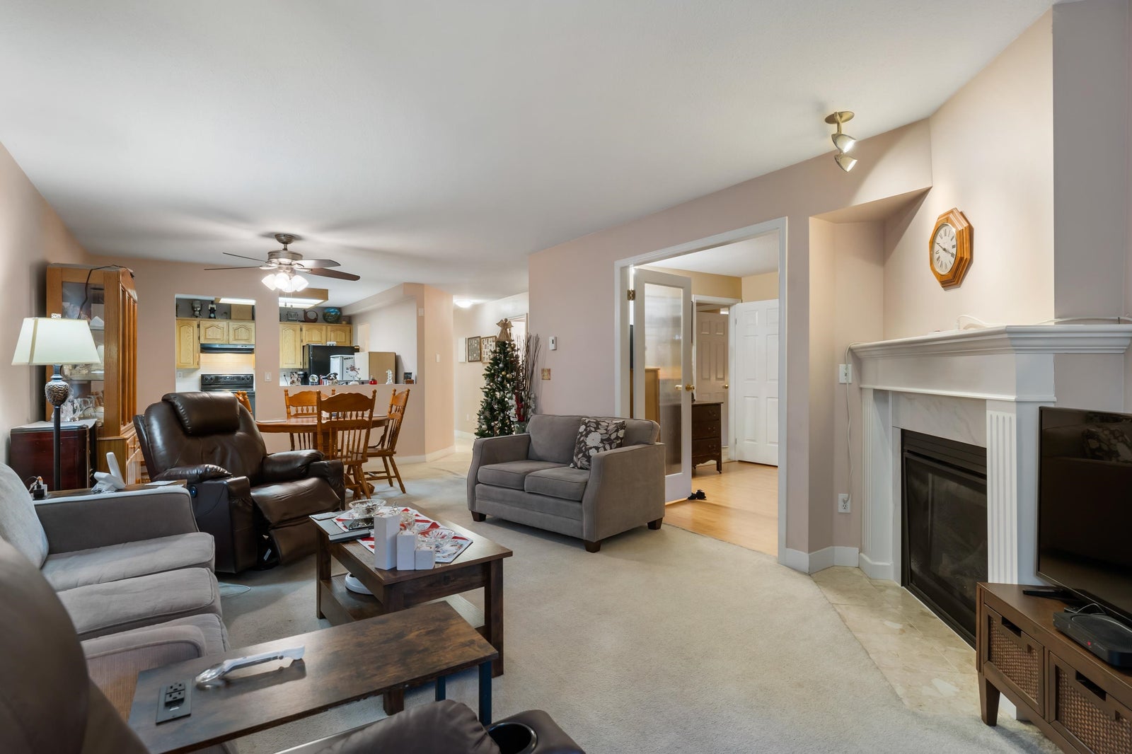 RARE FIND in Sunshine Hills! Private, Ultra Quiet, Bright & Spacious 2-bedrm, 2-bathrm slightly elevated ground floor unit with large covered South West patio looking onto greenspace. Well-managed gated community with a clubhouse & low maint fee of only $381. Comfortable, well-designed layout with generous room sizes. Large primary bedroom with a full ensuite with double sinks, a 2nd full bathrm & the convenience of in-suite laundry. Private balcony, perfect for morning coffee or relaxed summer BBQs. New gas heatilator fireplace. Secured underground parking, storage locker & visitor parking. Pet allowed max 25 lbs. Incredible location—walking distance to transit, shopping, restaurants, schools & all amenities. A wonderful place to call home in one of Delta’s most desirable neighbourhoods!