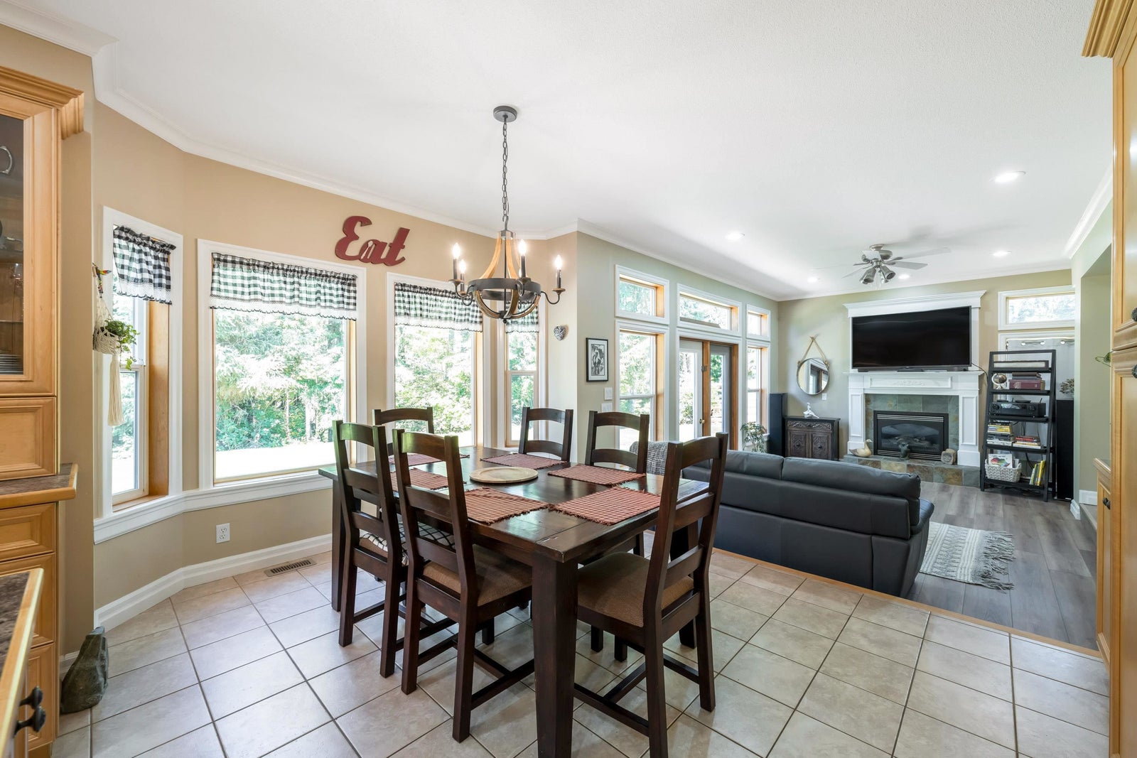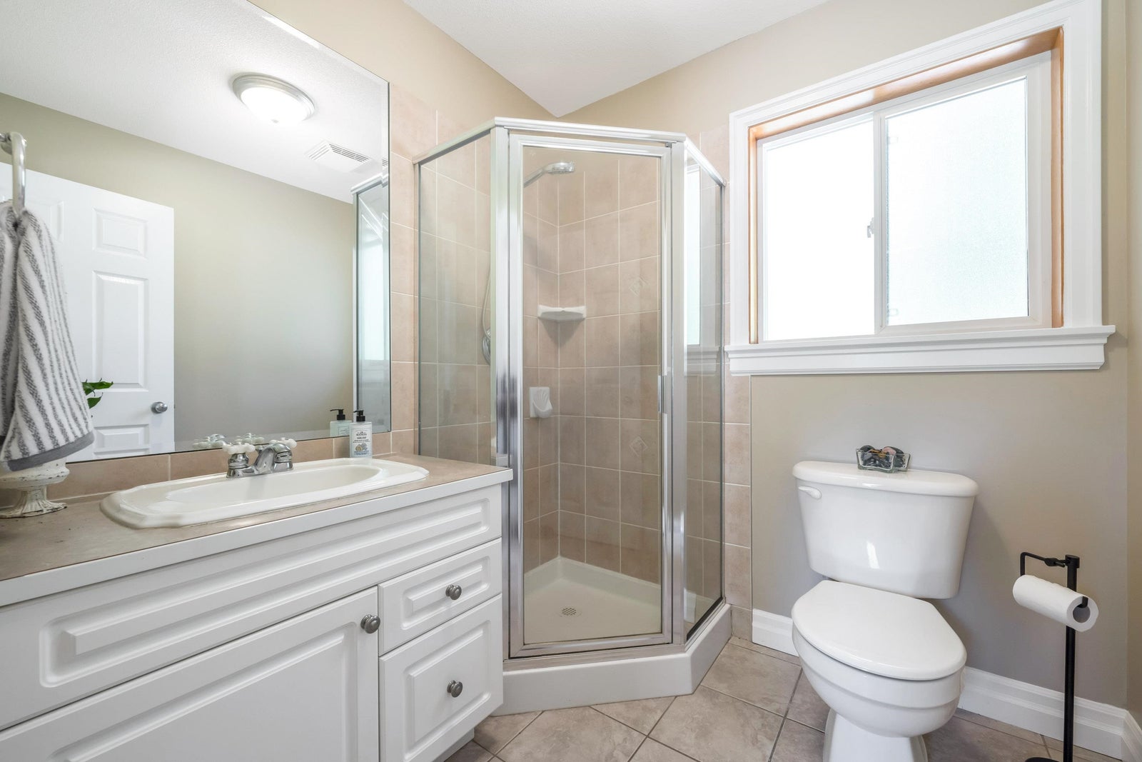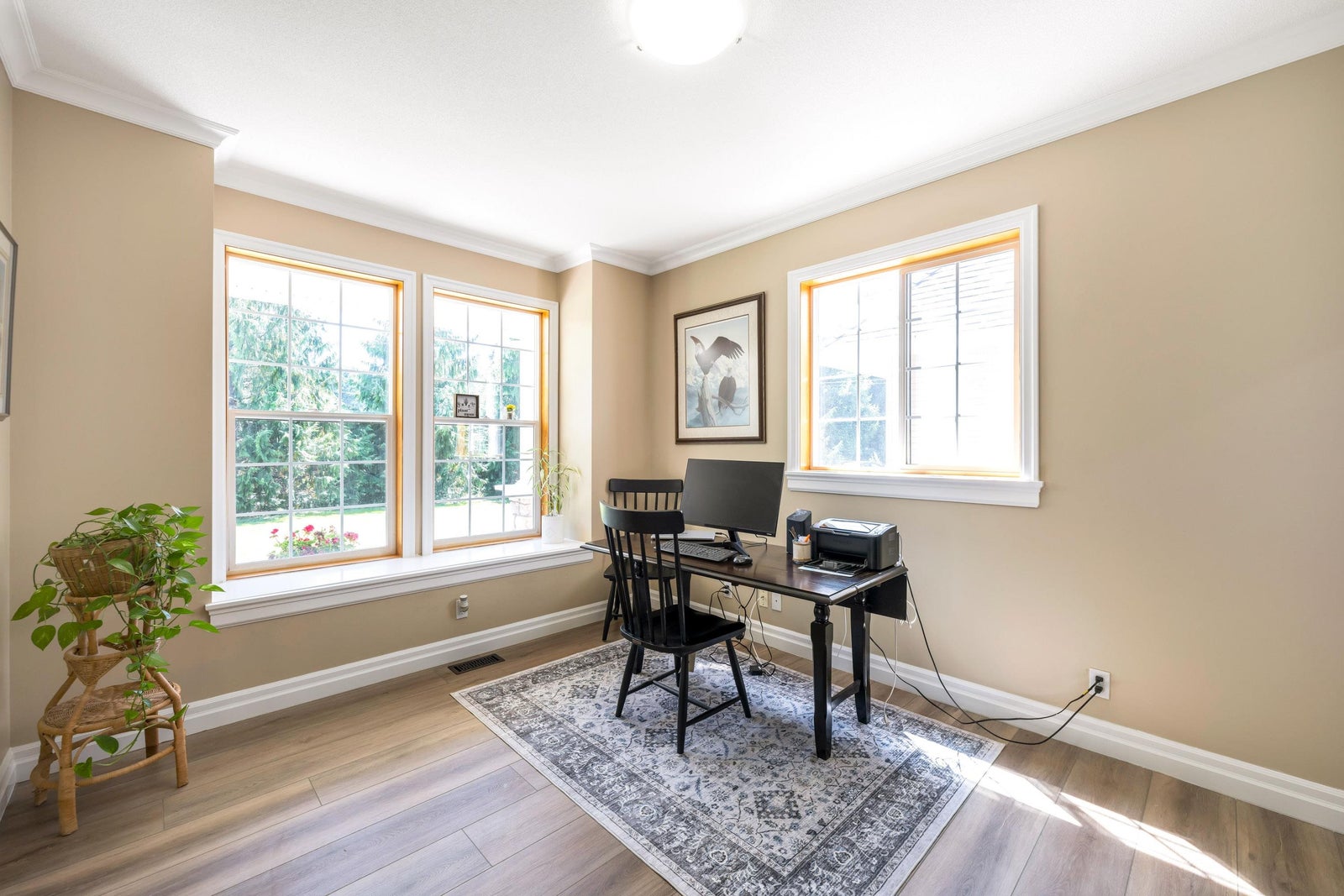 Front veranda welcomes you to this Gorgeous Custom-built 4382 sf 2-storey with fully finished basement (roughed in for a suite or wet bar) on a Private parklike acre backing onto greenbelt. Quiet street. Oversized 810 sf triple garage, loads of parking. New 2025 - high-efficiency furnace, central AC, hot water on demand, flooring & paint. Custom maple kitchen w/island & open to bay window eating area & family rm w/gas fireplace & french doors to patio & yard. Cross hall living & dining room/office. Up - primary bedrm w/walk-in closet & soaker tub & sep shower ensuite. 2nd oversized bedrm (easy 3rd bedrm). Huge games rm over the garage w/sep entrance (easy nannies quarters). Daylight basement w/sep entrance (easy suite), large rec room, 2 bedrms & a sauna. Quick access to Hwy 1. A must see!