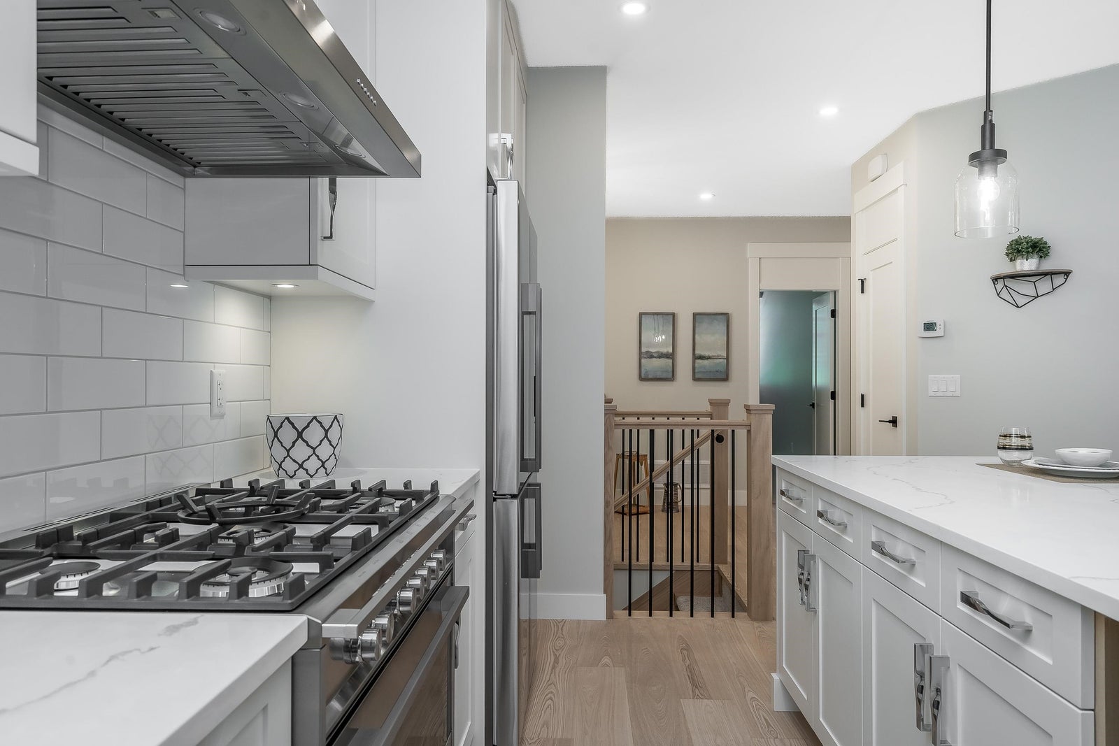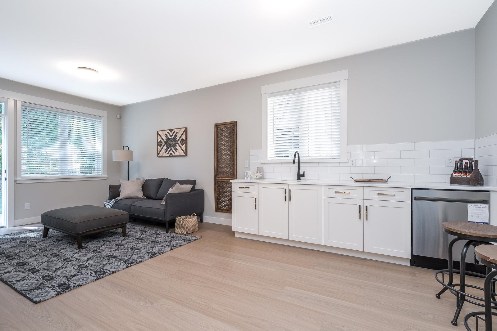 Stunning level entry basement home with quality workmanship & thoughtful design. Incredible European builder. Open-concept plan highlighted by wide-plank hardwood flooring, white shaker cabinetry & elegant quartz countertops throughout. Main features Gourmet kitchen w/large island, pantry, gas range & Fisher & Paykel appliance package, spacious great rm & doors to huge covered deck w/stairs to yard. 4 bedrms & 2 full bathrms, both w/dual vanities, walk-in shower & soaker tub complete the main floor. Lower level includes a den, wet bar, family rm & potential additional bedrm - could be a great nanny suite. Sep entrance to a legal 2-bedrm suite w/own laundry. H/W on demand & A/C! Sought after neighbourhood- close to schools, parks, dog park, Al Anderson Pool & miles of nature trails.