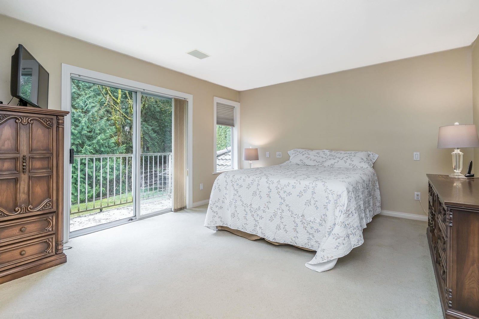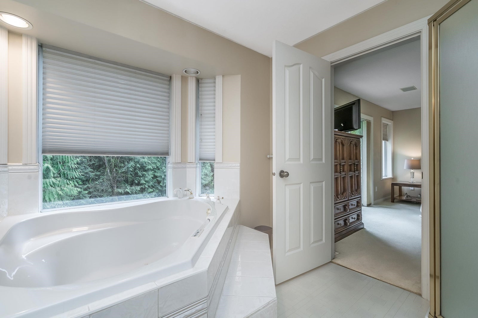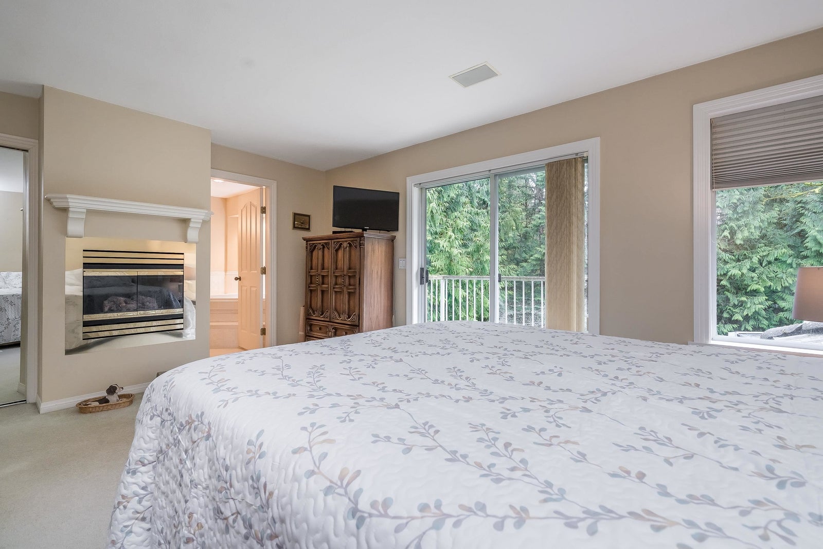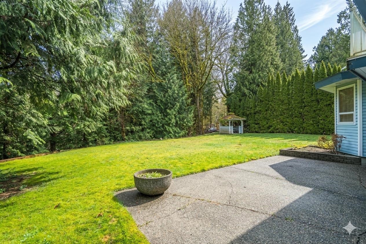 RARE FIND in highly sought after neighborhood! Exceptional private 1/2 acre bordered on three sides by treed greenspace & 600 acre Tynehead Park w/miles of nature trails at your doorstep. Ultra-quiet & only one neighbour, offering a level of peace & privacy that is rarely available. Well-maintained (ready for updates) 2-storey w/extra deep triple garage/workshop, traditional main floor layout, spacious living areas & office/4th bedrm, ideal for working from home (easy side suite). 3 bedrms up - generous primary suite w/fireplace, balcony, walkin closet & ensuite w/soaker tub & sep shower. West-exposed backyard backing onto greenspace. Gazebo wired for a hottub. AC. Crawl space for extra storage. A unique lifestyle property offering space, privacy, direct park access & sought-after setting.