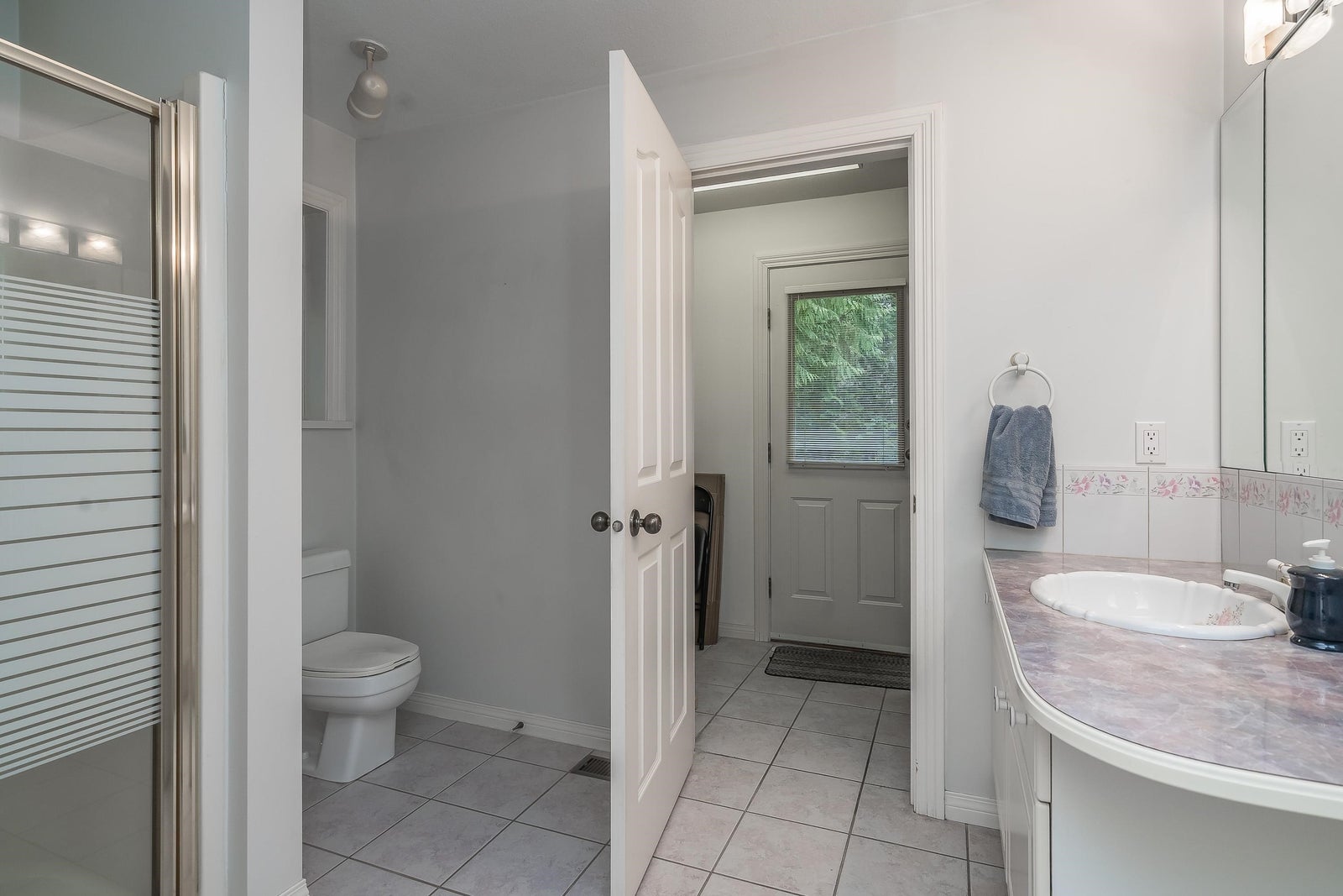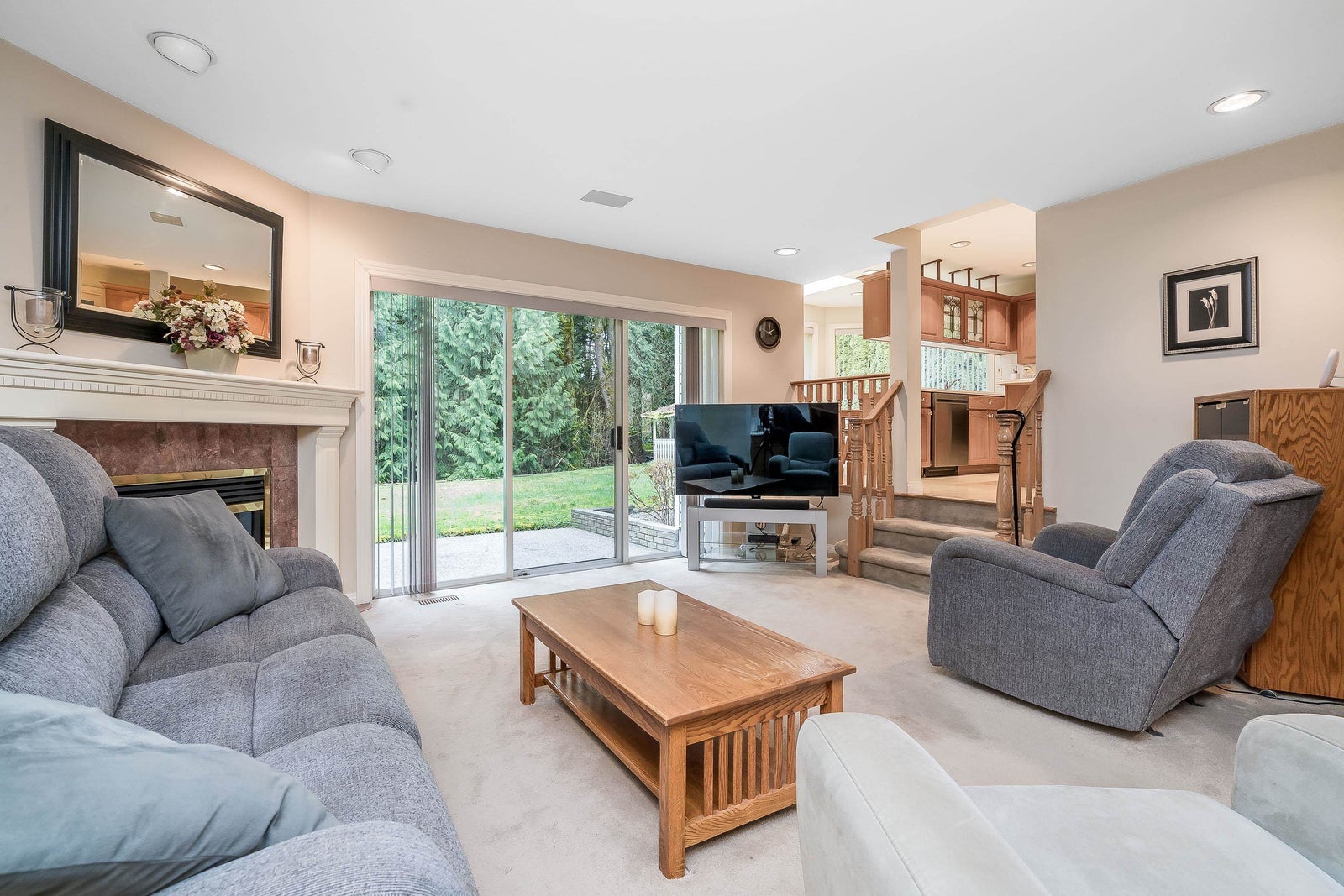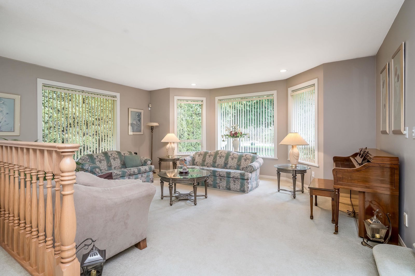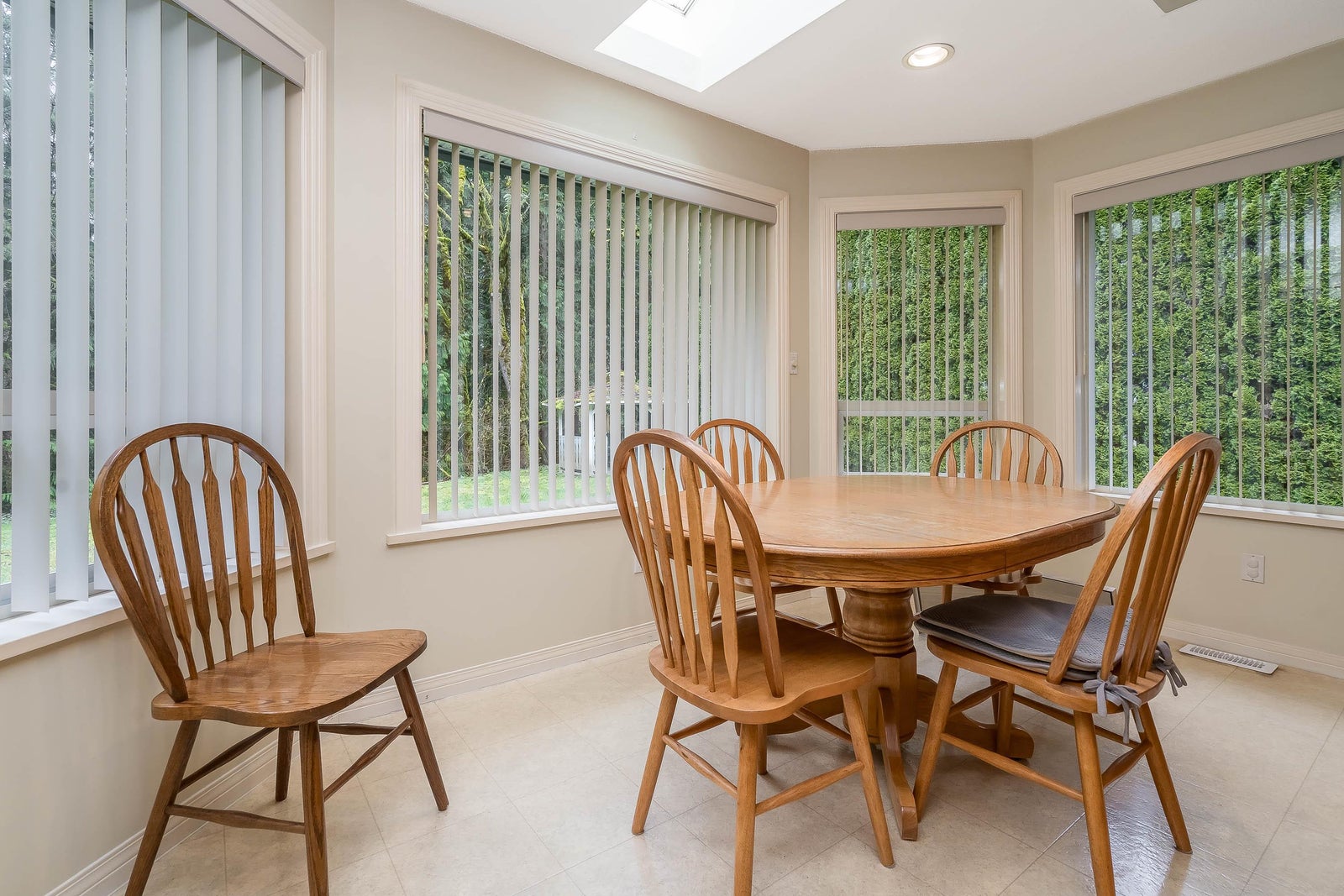 RARE FIND in highly sought after neighborhood! Exceptional private 1/2 acre bordered on three sides by treed greenspace & 600 acre Tynehead Park w/miles of nature trails at your doorstep. Ultra-quiet & only one neighbour, offering a level of peace & privacy that is rarely available. Well-maintained (ready for updates) 2-storey w/extra deep triple garage/workshop, traditional main floor layout, spacious living areas & office/4th bedrm, ideal for working from home (easy side suite). 3 bedrms up - generous primary suite w/fireplace, balcony, walkin closet & ensuite w/soaker tub & sep shower. West-exposed backyard backing onto greenspace. Gazebo wired for a hottub. AC. Crawl space for extra storage. A unique lifestyle property offering space, privacy, direct park access & sought-after setting.