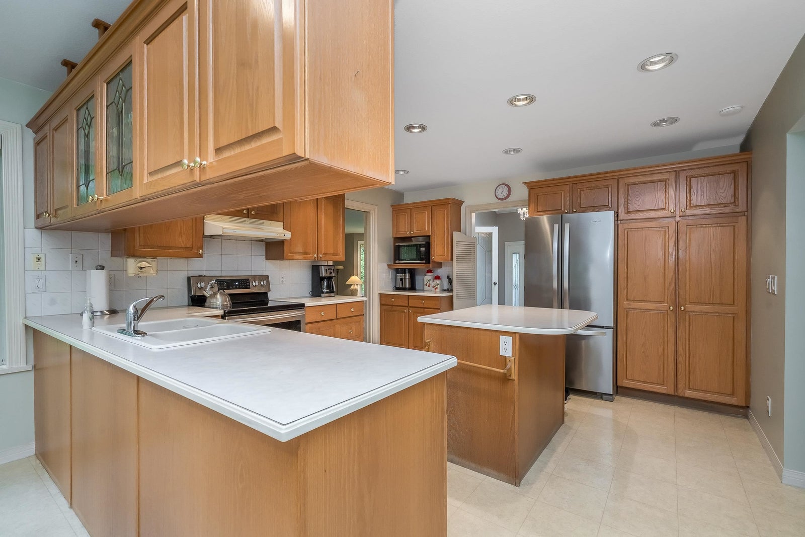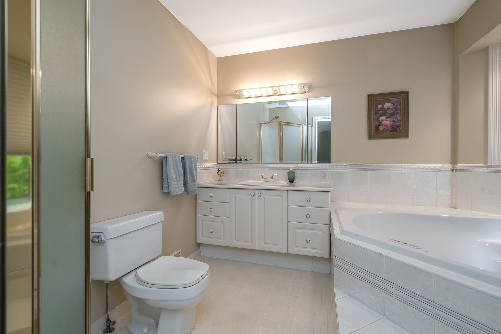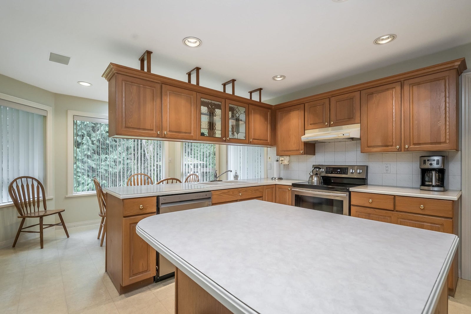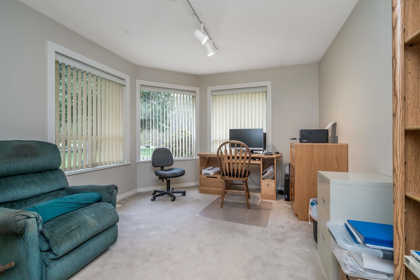 RARE FIND in highly sought after neighborhood! Exceptional private 1/2 acre bordered on three sides by treed greenspace & 600 acre Tynehead Park w/miles of nature trails at your doorstep. Ultra-quiet & only one neighbour, offering a level of peace & privacy that is rarely available. Well-maintained (ready for updates) 2-storey w/extra deep triple garage/workshop, traditional main floor layout, spacious living areas & office/4th bedrm, ideal for working from home (easy side suite). 3 bedrms up - generous primary suite w/fireplace, balcony, walkin closet & ensuite w/soaker tub & sep shower. West-exposed backyard backing onto greenspace. Gazebo wired for a hottub. AC. Crawl space for extra storage. A unique lifestyle property offering space, privacy, direct park access & sought-after setting.
