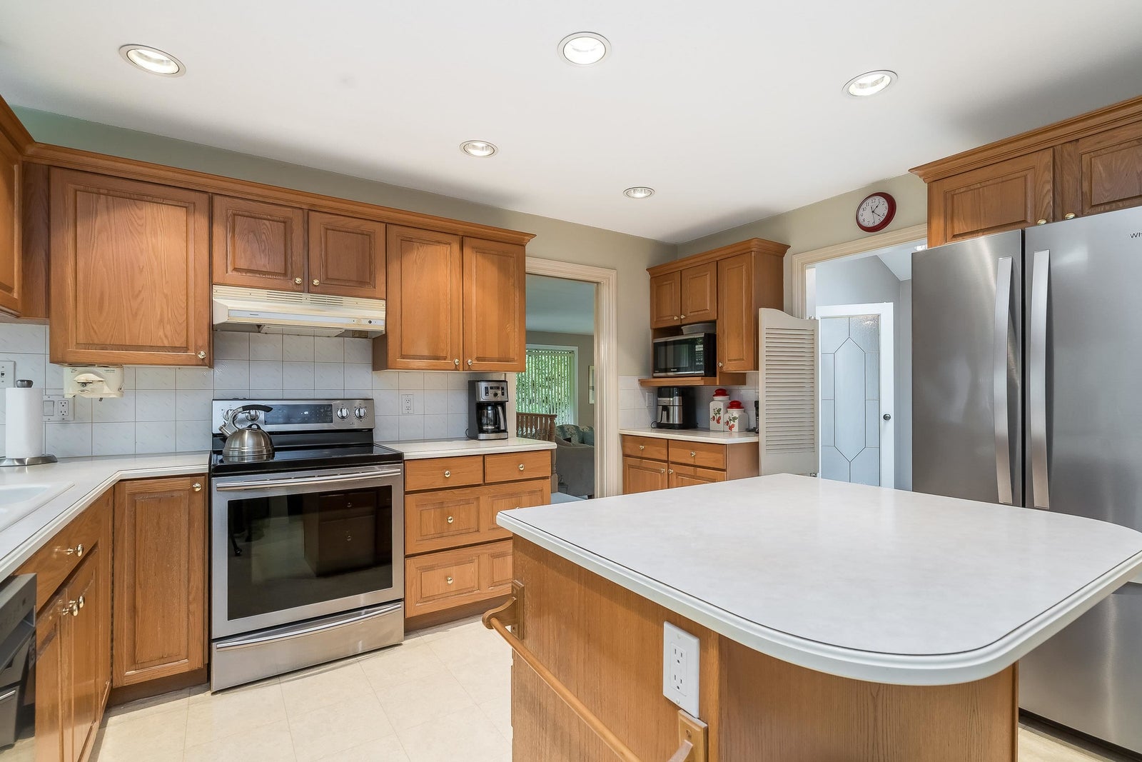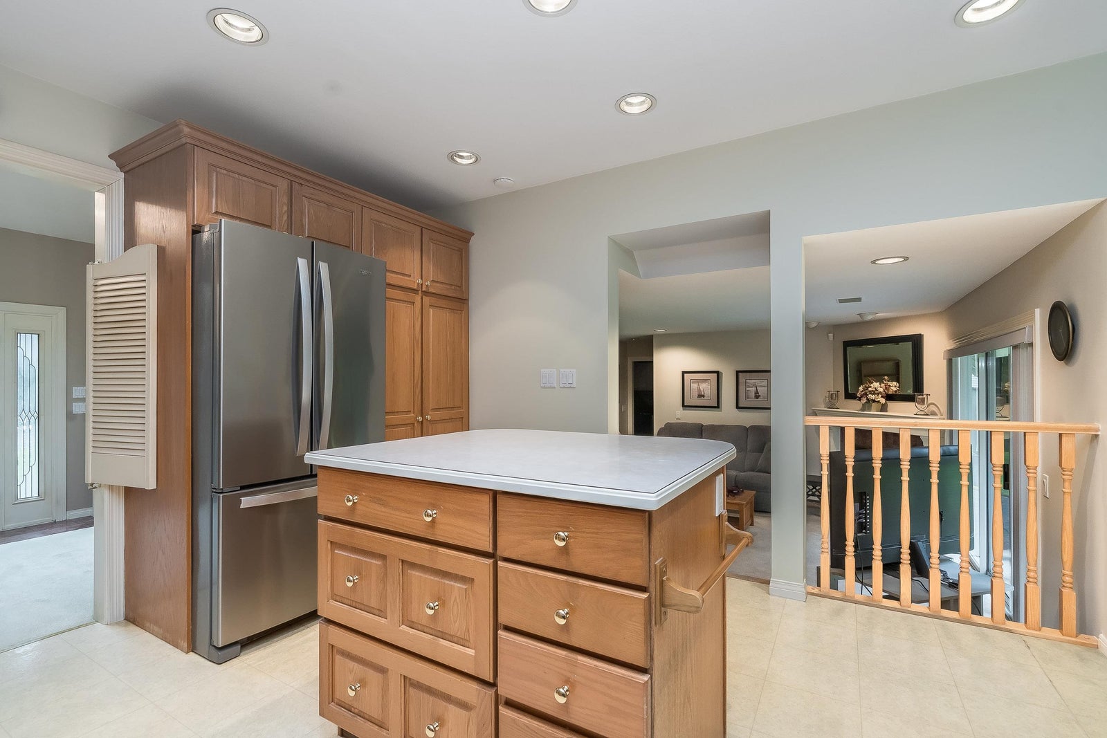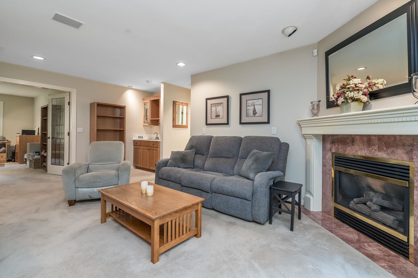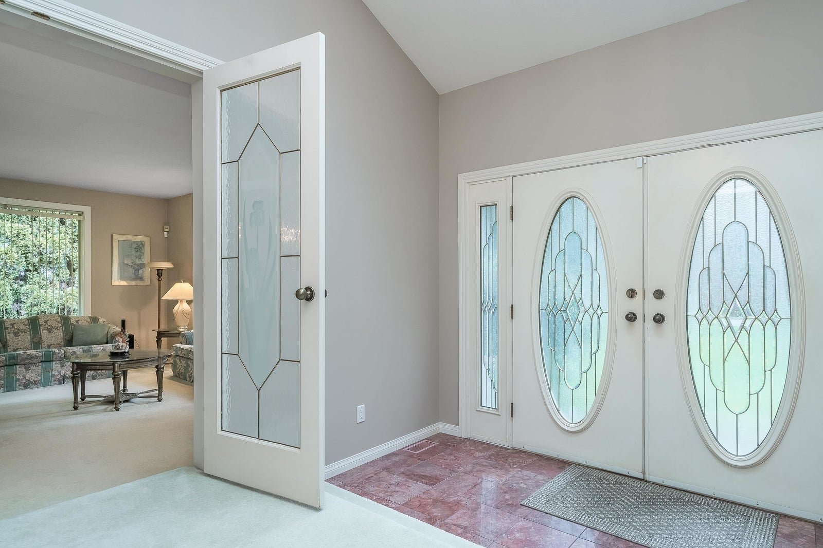 RARE FIND in highly sought after neighborhood! Exceptional private 1/2 acre bordered on three sides by treed greenspace & 600 acre Tynehead Park w/miles of nature trails at your doorstep. Ultra-quiet & only one neighbour, offering a level of peace & privacy that is rarely available. Well-maintained (ready for updates) 2-storey w/extra deep triple garage/workshop, traditional main floor layout, spacious living areas & office/4th bedrm, ideal for working from home (easy side suite). 3 bedrms up - generous primary suite w/fireplace, balcony, walkin closet & ensuite w/soaker tub & sep shower. West-exposed backyard backing onto greenspace. Gazebo wired for a hottub. AC. Crawl space for extra storage. A unique lifestyle property offering space, privacy, direct park access & sought-after setting.