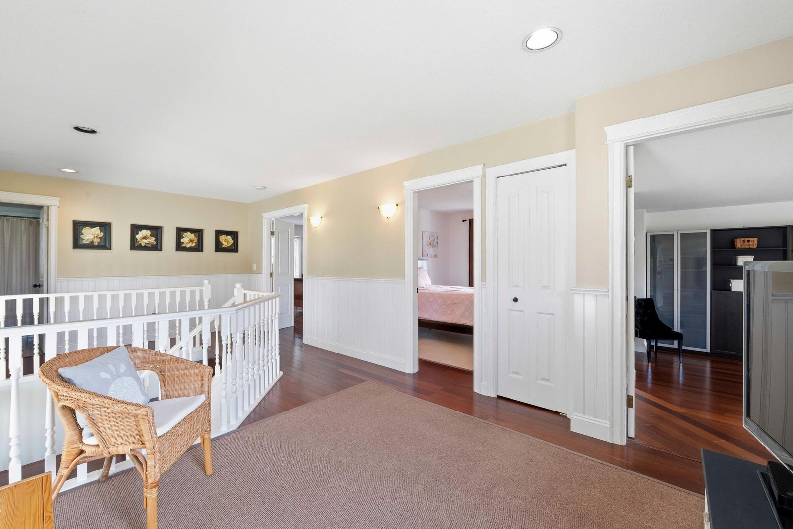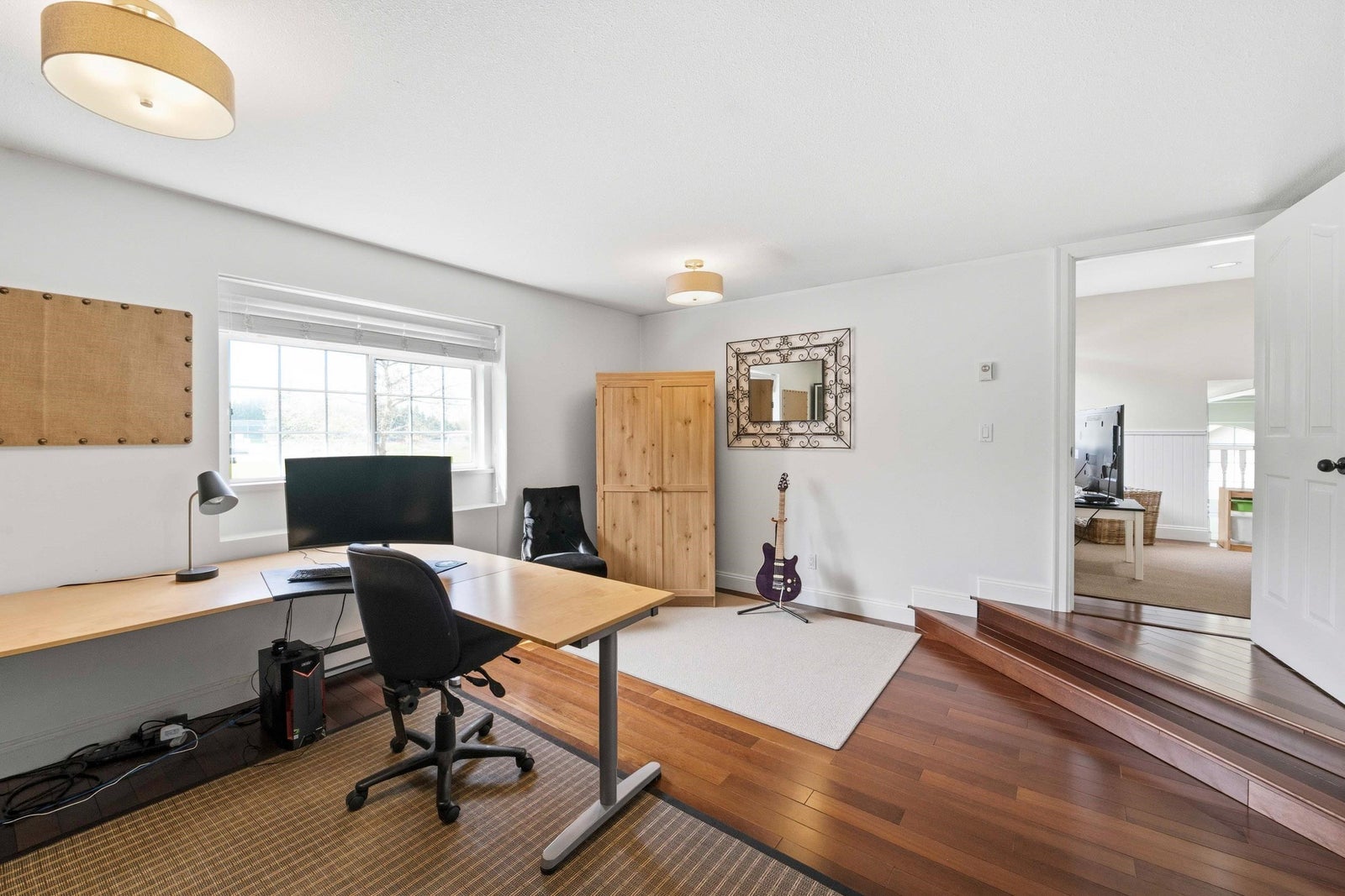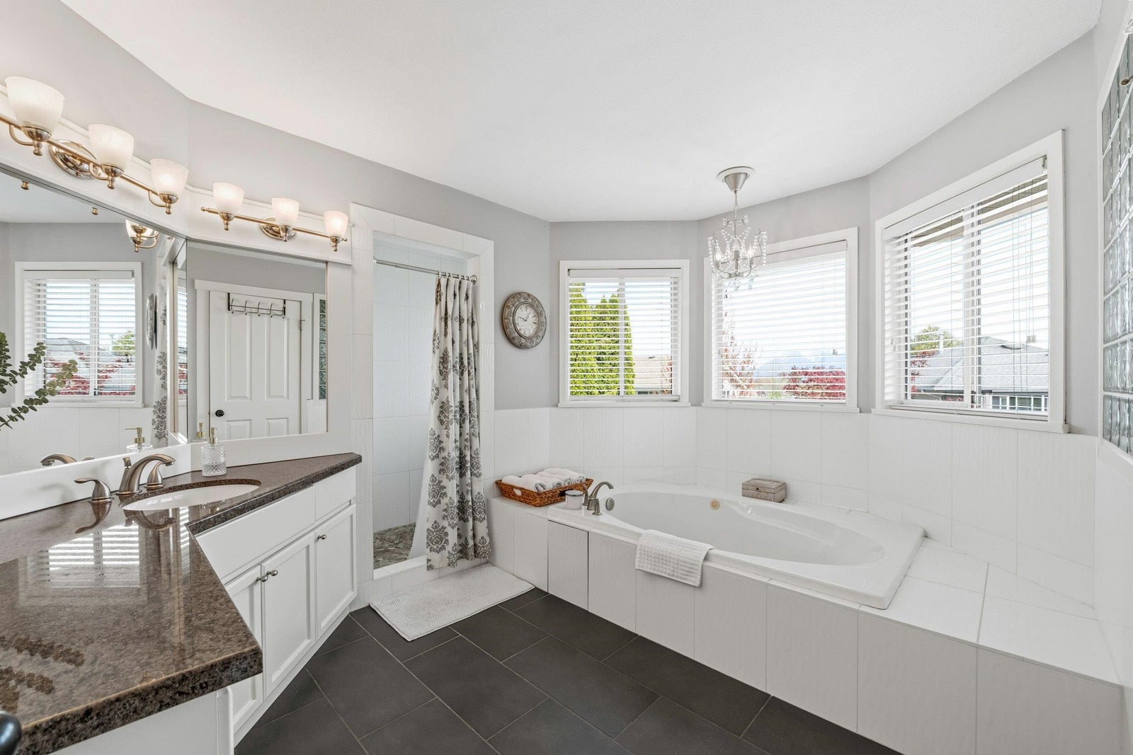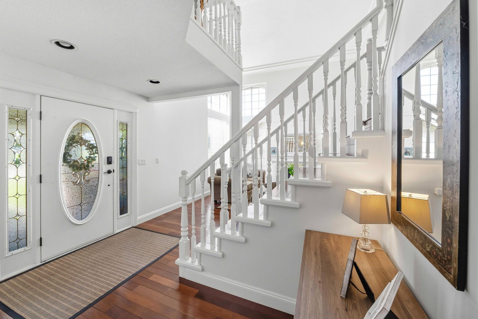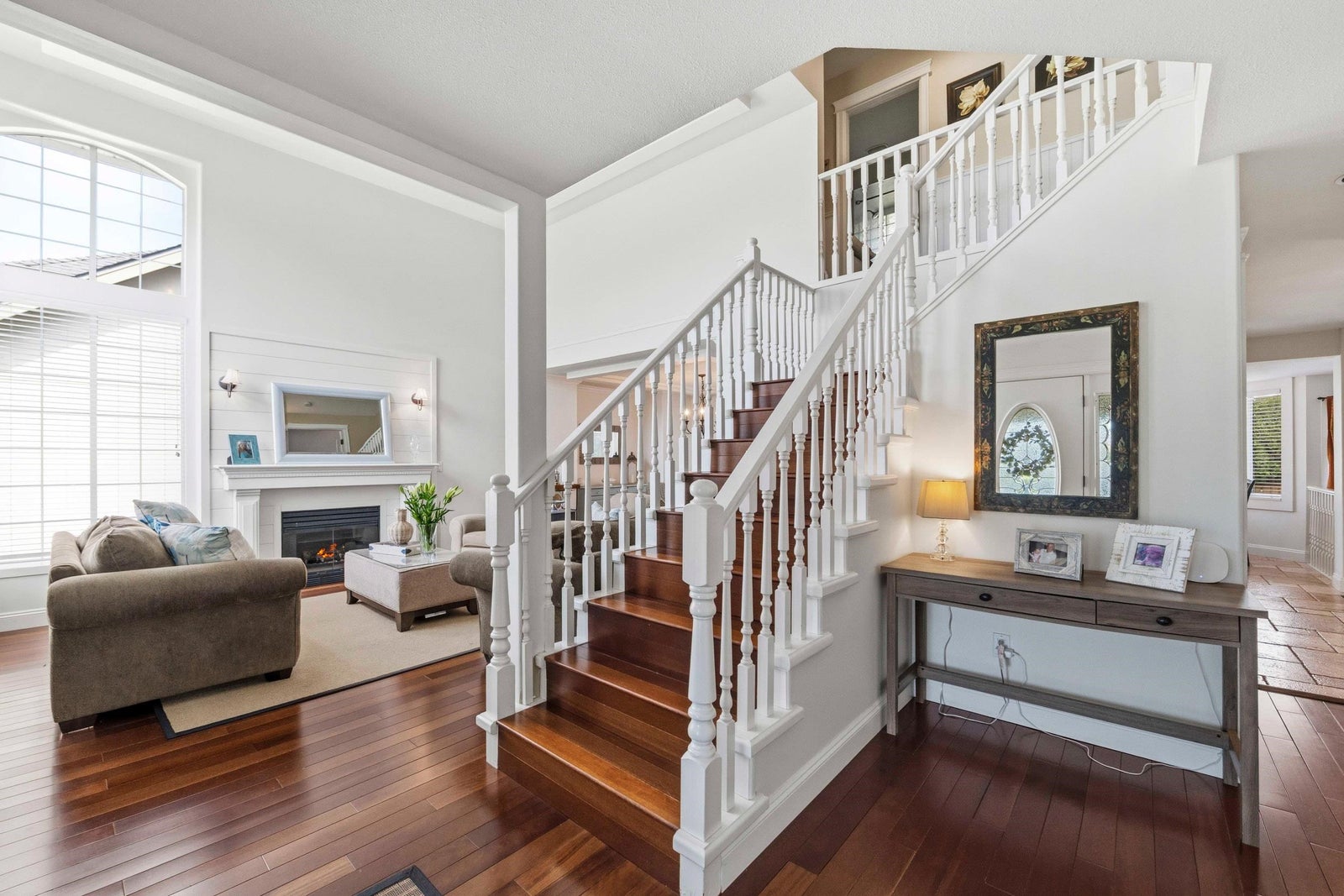 Fantastic location & outlook across from a beautiful park & steps to Alex Hope school. Beautifully updated 2507 sf former Forest Hills showhome boasting premium hardwood floors & Chef’s kitchen w/SS appliances, dual ovens & Travertine Tile floors open to family rm w/gas fireplace & French doors to large outdoor living area, gazebo, gas fire table & private rear yard. Living/dining rm combo w/gas fireplace. Den/bedroom on main. 3-4 bedrooms + den up - massive primary suite w/walk-in closet, jetted tub & oversized walk-in shower ensuite. The sprawling games room includes a wet bar rough-in, easily serving as a 5th bedroom. Located minutes from shops, restaurants, Walnut Grove Secondary, community center, library & nature trails -this home offers unparalleled space, refinement & convenience.